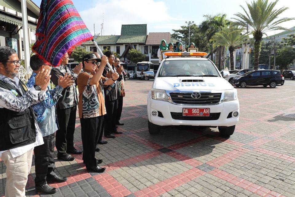 Pelepasan konvoi yang dipimpin langsung Ketua Forum Kota Sehat Banjarmasin Fathurrahman, dilakukan H Ibnu Sina, usai memimpin apel pagi di halaman Balai Kota Banjarmasin.