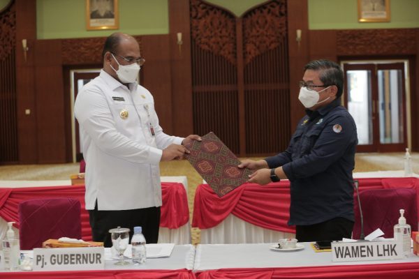 SuarIndonesia – Wakil Menteri Lingkungan Hidup dan Kehutanan (LHK), Alue Dohong, saat rapat koordinasi dengan Pj Gubernur Kalsel, Safrizal ZA, di Gedung Idham Chalid, Banjarbaru, Rabu (10/3/2021), menuturkan pihaknya telah merencanakan bantuan pascabanjir untuk Kalsel.