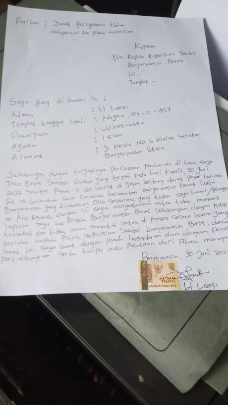 Pemberitaan sebelumnya pencurian iemas ini terjadi Jalan Belitung Darat tepatnya di Pasar Kalindo Banjarmasin Barat, Kamis (30/6/2022), sekitar pukul 10.30 WITA.