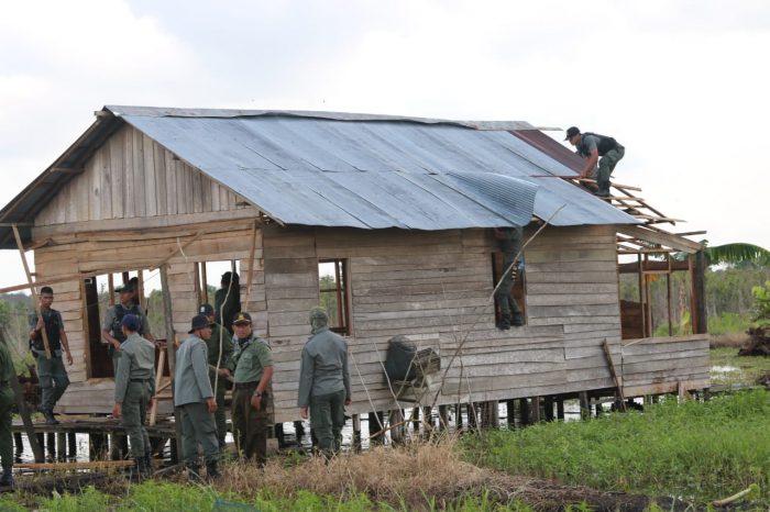 SuarIndonesia – Petugas gabungan dari Polisi Kehutanan, TNI, Polri, dan Satpol PP membongkar lima bangunan milik warga yang berdiri di kawasan Hutan Lindug Lianganggan, Kamis (16/1).