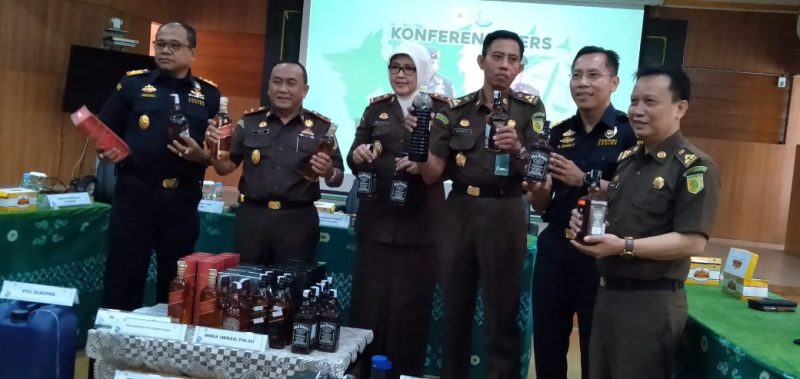 Suarindonesia – Berbagai merek minuman keras (miras) import yang ternyata palsu, diproduksi di Kalsel disita pihak Direktorat Jenderal Bea Cukai (DJBC) Wilayah Kalimantan Bagian Selatan dan bersamaan digelar di Kejaksaan Tinggi (Kejati) Kalsel, Rabu (25/9).