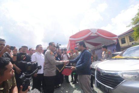 Kapolda Kalsel, Andi Rian R Djajadi, menyerahkan diaantra barang bukti kendaraan bermotor yang diamankan kepada pemiliknya.