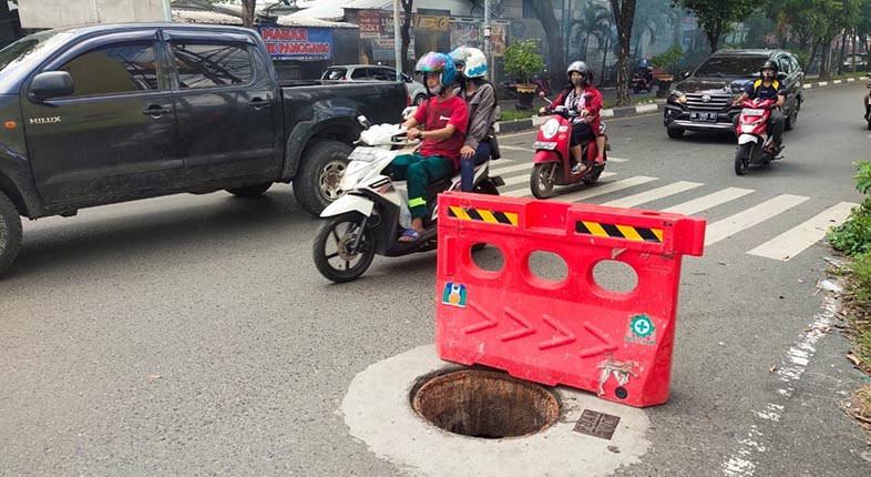“Mungkin sekitar tiga hari yang lalu, tutup manhole di Jalan Pramuka yang hilang. Jadi dalam beberapa hari ini sudah ada dua tutup manhole yang hilang,” bebernya.
