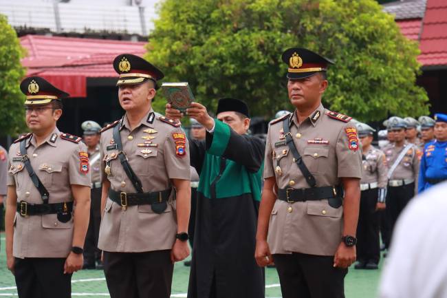 Serah terima jabatan (sertijab) di halaman Mapolresta Banjarmasin, Kamis (12/6/2025) dipimpin Kapolresta Banjarmasin, Kombes Pol. Cuncun Kurniadi.