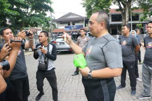 “Ini pentinmg bagi tubuh kita. Dengan rajin berolahraga, maka imunitas menjadi baik sehingga tubuh relatif lebih kebal terhadap virus penyakit termasuk virus corona,” ujar Kombes Pol dr H Erwinn, kepada wartawan, usai kegiatan.