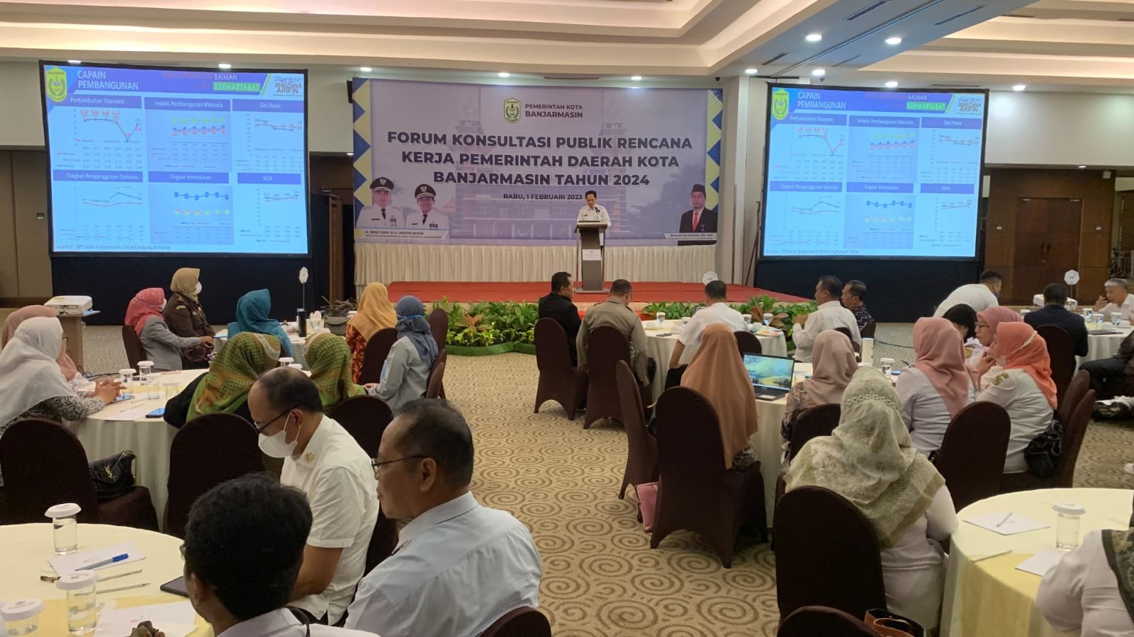 SuarIndonesia – Badan Perencanaan Pembangunan Daerah, Penelitian dan Pengembangan (Bappedalitbang) Kota Banjarmasin menggelar Forum Konsultasi Publik (FKP) Rencana Kerja Pemerintah Daerah (RKPD) Kota Banjarmasin Tahun 2024, berlangsung di Rattan Inn Hotel Banjarmasin, Rabu (01/02/2023).