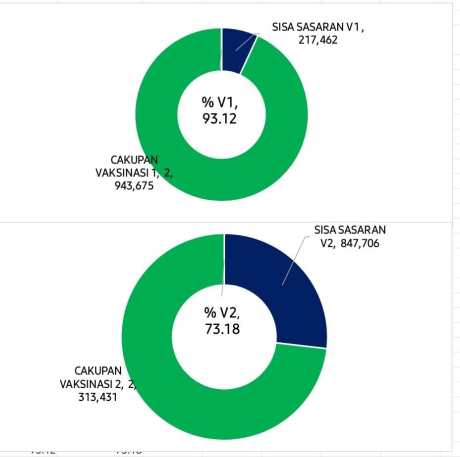 Sementara dosis kedua mencapai 73,18 persen atau sudah sebanyak 2,3 juta lebih orang divaksin. Sasaran vaksinasi 1 dan 2 sebanyak 6.322.274 jiwa.