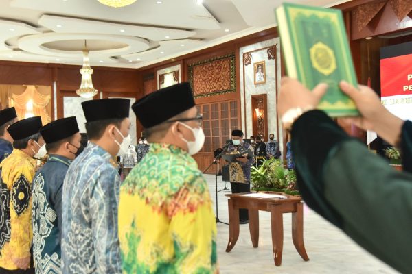SuarIndonesia- 12 pejabat eselon 2 atau jabatan pimpinan tinggi (JPT) pratama dilantik Gubernur Kalsel, Sahbirin Noor, Kamis (14/4/2022) di Gedung Mahligai Pancasila. 12 pejabat yang dilantik terdiri dari 10 hasil lelang jabatan dan 2 mutasi jabatan,