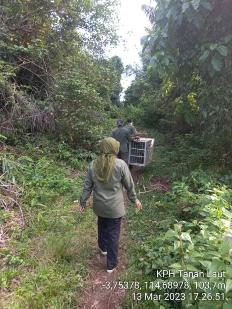 Pelepasliaran satwa dilakukan oleh KPH Tanah Laut pada Senin (13/3/2023) yang berkoordinasi terlebih dahulu dengan BKSDA Resort Pelaihari dan aparat desa agar mempermudah proses pelepasliaran.