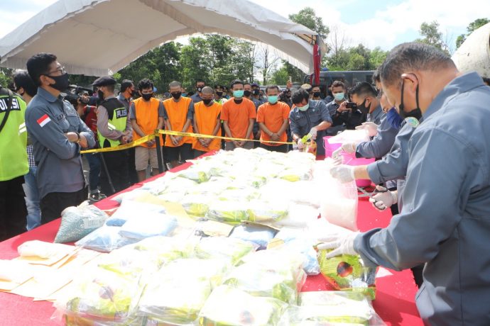 Semua disaksikan enam tersangka dengan rincian barang bukti yakni sabu berat bersih 237.335,4 gram), ekstasi 54.932 butir, dan serbuk ektasi 220,76 gram.
