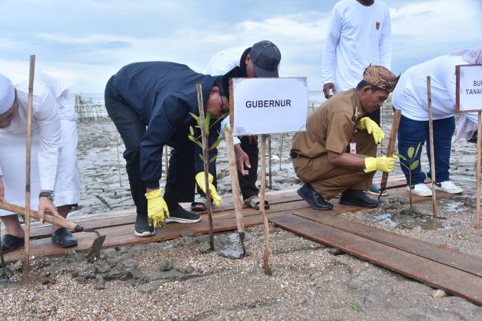 “Sebagai langkah awal hari ini dilakukan penandatanganan kerjasama dan komitmen upaya pemulihan dan lahan kritis pesisir dan juga penyerahan bibit Rhizophora Apiculata dari bapak gubernur kepada kelompok masyarakat setempat,” jelasnya.(RW)