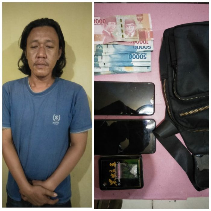 Anggota menyita barang bukti sabuah tas slempang dua unit Handpone, satu paket sabu-sabu berat bersih 0,34 gram, dan uang diduga hasil penjualan narkotika sebanyak Rp.1.470.000.
