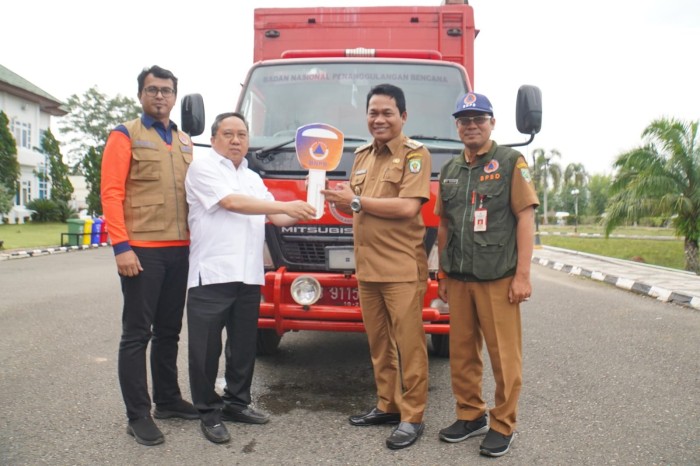 Suarindonesia – Bupati Balangan Abdul Hadi, menerima satu unit bantuan mobil dapur umum dari Badan Nasional Penanggulangan Bencana (BNPB) yang diserahkan anggota Komisi VIII DPR RI, H Syaifullah Tamliha, di Halaman Kantor Bupati Balangan, Paringin Selatan, Senin (22/1/2024).