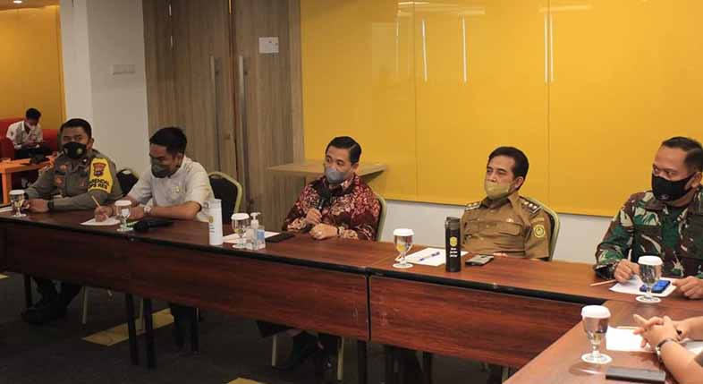 SuarIndonesia — Walikota Banjarmasin H Ibnu Sina didampingi Wakil Walikota Banjarmasin H Arifin Noor memimpin rapat Forum Koordinasi Pimpinan Daerah (Forkopimda) Kota Banjarmasin, terkait menjelang Natal dan Tahun Baru dalam pengendalian Covid-19 , yang berlangsung di Zuri Express Banjarmasin, Senin (15/11/2021).