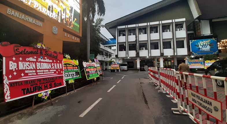 Bahkan, sebagian halaman Balai Kota Banjarmasin sudah dihiasi karangan bunga berisi ucapan selamat. Ditujukan kepada Ikhsan Budiman, yang bakal dilantik menjadi panglima bagi seluruh ASN di lingkup Pemko Banjarmasin ini.