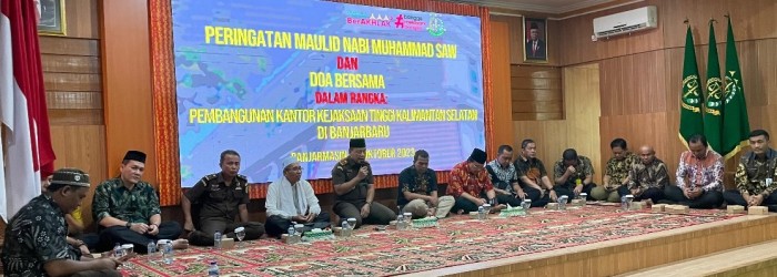 SuarIndonesia – Peringatan Maulid Nabi Muhammad SAW dirangkai dia bersama untuk Kelancaran pembangunan Gedung Baru Kejati Kalsel, yang berada di Kota Banjarbaru.
