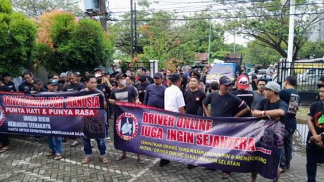 SuarIndonesia – Para sopir taksi online di bawah naungan Driver Online Kalsel Bersatu (DOKB) aksi protes atau aksi damai ke Kantor Perusahaan Aplikator Maxim, Grab, dan Gojek yang ada di Kota Banjarmasin, dan Kabupaten Banjar, Rabu (15/3/2023).