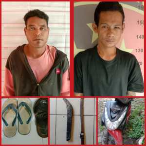 Disana anggota menyita barang bukti satu unit sepeda motor Yamaha Mio Soul tanpa plat nomor polisi, senjata tajam jenis mandau dan barang bukti lainnya