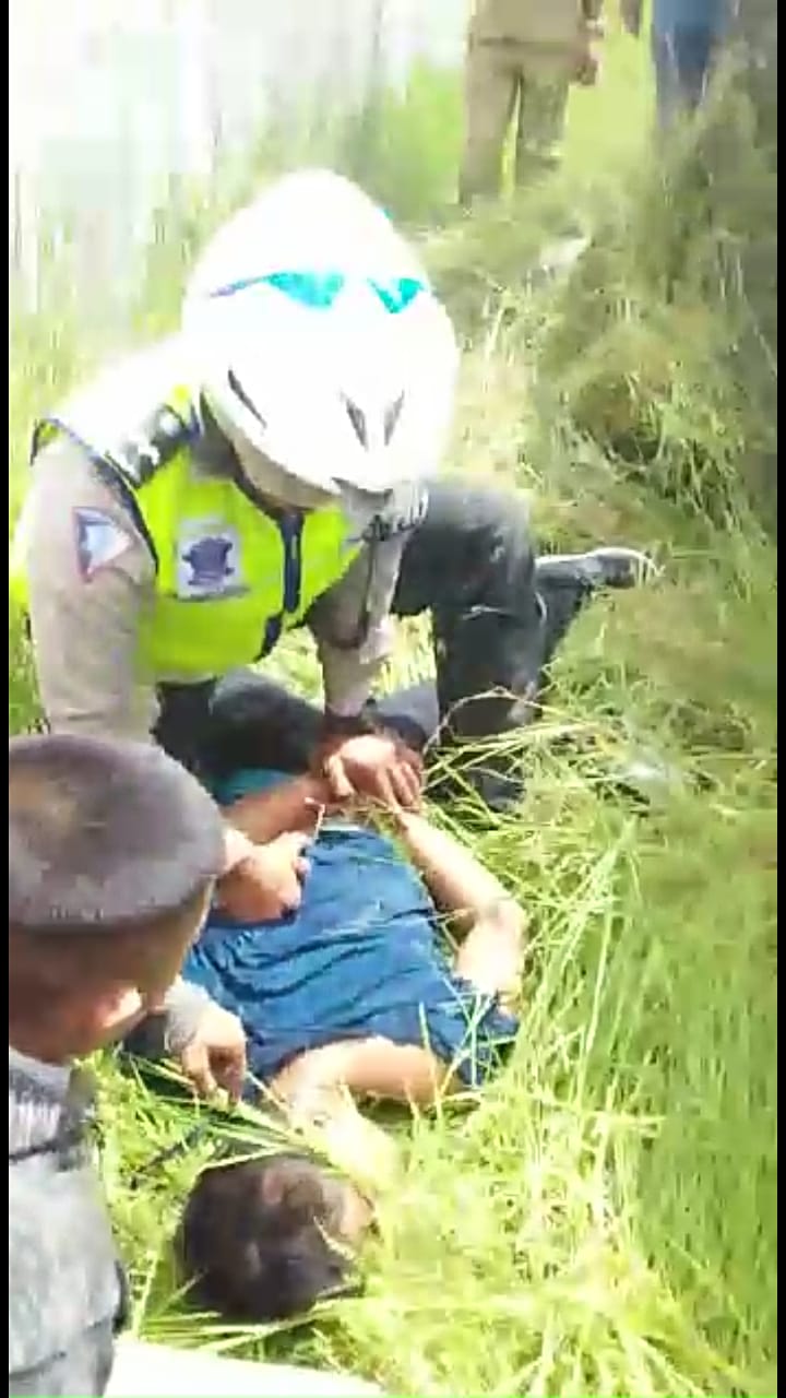 Anggota Lantas pun langsung mengamankan pelaku dengan cara di borgol. Pemuda itu sempat memberikan perlawanan dan borgol terlepas.