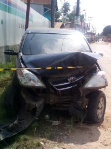 Hingga memasuki ke arah Jalan Alalak Utara Banjarmasin Utara, disitulah mobil yang dikemudikan menabrak tiang listrik.