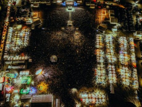 Pemandangan tak lazim disaksikan pengunjung yang memadati lapangan Batfest, yakni parade drone, yang membentuk tulisan Happy New Year, melayang di tengah kegelapan malam. Penonton pun langsung bersorak gembira.