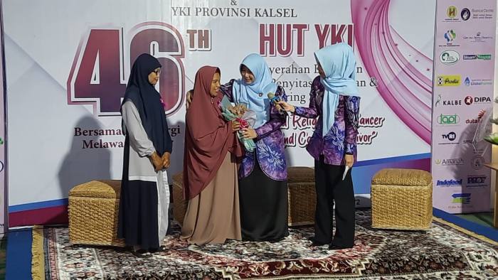 SuarIndonesia – Peringatan HUT ke 46 Yayasan Kanker Indonesia di Kota Banjarmasin dilakukan dengan pembagian bingkisan untuk penyintas kanker.