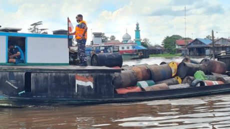 SuarIndonesia – Dua buah kapal pengangkut ratusan drum berisi BBM (Bahan Bakar Minyak) diduga ilegal diamankan dan ditahan anggota TNI-AL Banjarmasin.