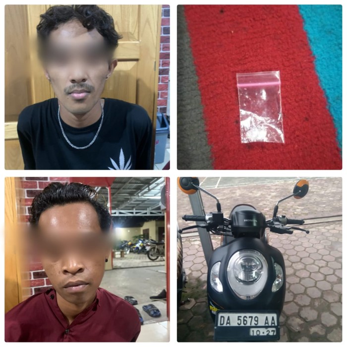 Kedua tersangka diketahui warga Jalan Jalan Antasan Kecil Timur RT 01 RW 01 Banjarmasin Utara, dan anggota menyita satu paket sabu yang di bungkus plastik klip berat bersih 0,15 gram. Juga mengamankan satu unit sepeda motor Honda Scoopy