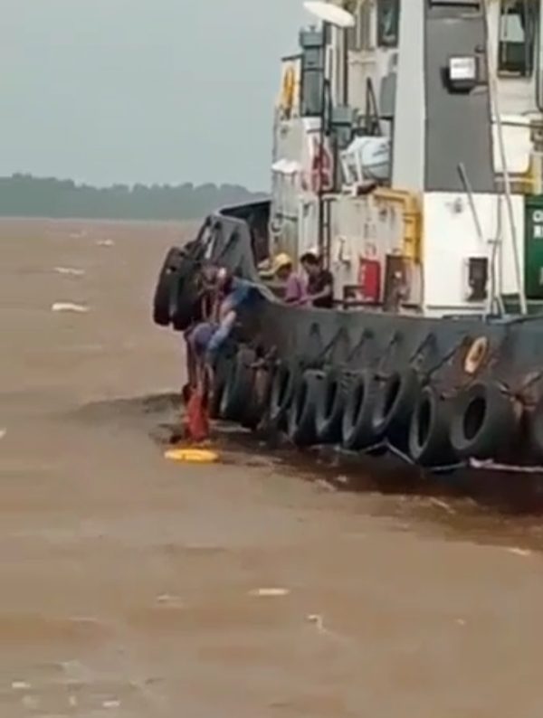 Kedua nelayan tersebut berupaya berenang sambil meminta tolong. Beruntung tak terlalu jauh dari lokasi itu melintas kapal Tugboat yang tengah menarik kapal tongkang dengan rute Banjarmasin tujuan Taboneo.