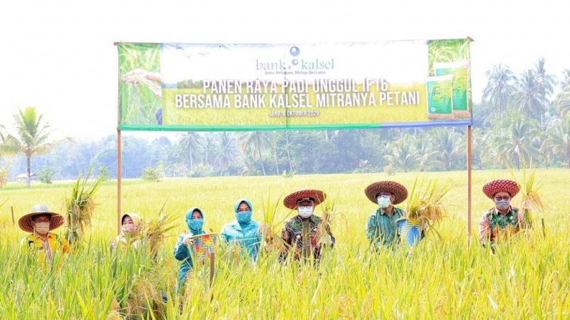 SuarIndonesia – Sebagai bentuk upaya mendukung program ketahanan pangan daerah dalam rangka pemulihan ekonomi nasional, Bank Kalsel menjalin sinergi dengan pemerintah adakan Panen Padi IF16 di Desa Nalui, Kecamatan Jaro, Kabupaten Tabalong (Kamis 8/10).