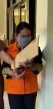Terdakwa kasus dugaan penipuan uang nasabah Bank BNI yang diseret ke persidangan Pengadilan Negeri (PN) Banjarmasin, bergegas pergi dari ruangan dengan pengawalan dari pihak Kejaksaan Negeri (Kejari) Banjarmasin menuju tahanan sementara yang ada di PN tersebut.