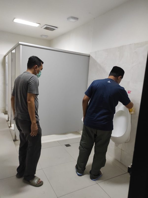 Salah satunya yang dicek langsung Paman Birin adalah WC atau toilet umum yang ada di lantai 1. Ia sempat membuka kran air untuk memastikan air mengalir.