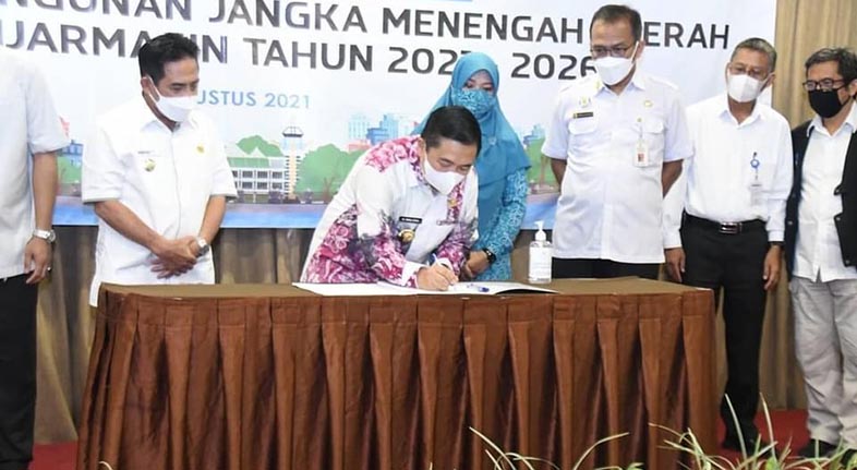 Dalam kesempatan tersebut, juga dilaksanakan penandatanganan kesepakatan bersama hasil forum konsultasi publik tahun 2021, yang diawali dari Walikota Banjarmasin H Ibnu Sina, Wakil Walikota Banjarmasin H Arifin Noor, Ketua DPRD Kota Banjarmasin, Hary Wijaya, Kepala Barenlitbangda, Sugito Said, Ketua TP PKK Kota Banjarmasin, Hj Siti Wasilah, dan beberapa bidang elemen yang terkait. (SU)