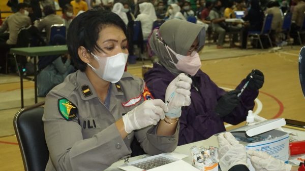 SuarIndonesia – Gerai vaksin Presisi Polda Kalsel diserbu ribuan warga, Kamis (9/9/2021).
