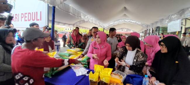 Dalam pelaksanaannya, para Bhabinkamtibmas dari seluruh wilayah Kota Banjarmasin turut mendampingi dan membawa warganya masing-masing untuk berbelanja di lokasi kegiatan.