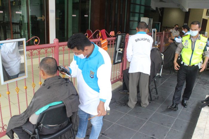 “Ini dari Biro Sumber Daya Manusia (SDM) Polda Kalsel yang memfasilitasi kegiatan. Ya menyiapkan tukang cukur telah diketahui identitas kesehatanya,” kata . Karo SDM Polda Kalsel, Kombes Pol Ari Wahyu Widodo.