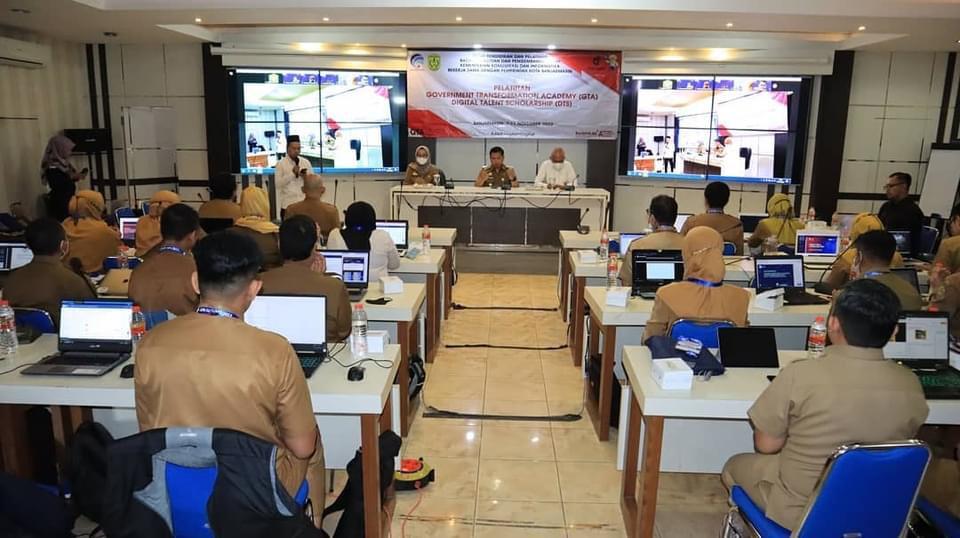 SuarIndonesia – Pemerintah Kota Banjarmasin, melalui Dinas Komunikasi, Informatika dan Statistik (Diskominfotik) bekerja sama dengan Pusat Pendidikan dan Pelatihan Badan Penelitian dan Pengembangan SDM Kementerian Komunikasi dan Informatika RI, menggelar kegiatan Pelatihan Government Transformation Academy (GTA) Digital Talent Scholarship (DTS), bertempat di Aula Bappeda Litbang, Blok C Lantai 3, Balai Kota Banjarmasin, Senin (07/11/2022).