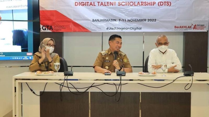 SuarIndonesia – Pemerintah Kota Banjarmasin, melalui Dinas Komunikasi, Informatika dan Statistik (Diskominfotik) bekerja sama dengan Pusat Pendidikan dan Pelatihan Badan Penelitian dan Pengembangan SDM Kementerian Komunikasi dan Informatika RI, menggelar kegiatan Pelatihan Government Transformation Academy (GTA) Digital Talent Scholarship (DTS), bertempat di Aula Bappeda Litbang, Blok C Lantai 3, Balai Kota Banjarmasin, Senin (07/11/2022).