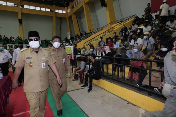 SuarIndonesia – Gubernur Kalsel, H. Sahbirin Noor, meninjau pelaksanaan program serbuan vaksinasi Nawahasta AKABRI 1998 di GOR Hasanuddin HM Banjarmasin, Selasa (21/9/2021).
