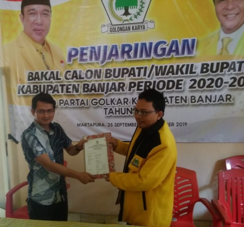 SuarIndonesia – Gusti Sulaiman Razak secara resmi menyerahkan berkas pendaftaran Bakal Calon Bupati (Bacabup) Banjar ke DPD Partai Golkar Kabupaten Banjar, Senin (14/10) siang.