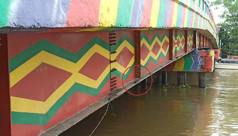 “Wisatawan juga biasanya kan lalu lalang di bawah jembatan tersebut saat menikmati wisata susur sungai menggunakan klotok pada malam hari,” imbuhnya.