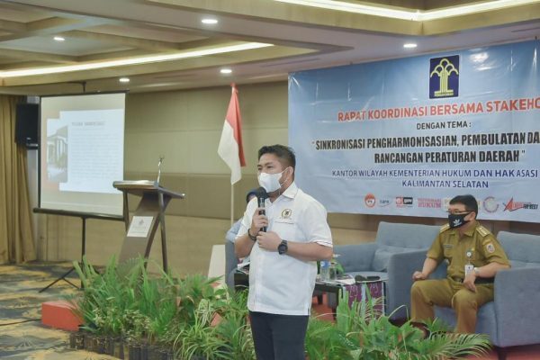 Sementara, Kepala Kanwil Kemenkumham Provinsi Kalsel, Tejo Harwanto, Bc.I.P., S.I.P., mengatakan,m rakor ini adalah ajang untuk duduk bersama mencari solusi serta meminimalisir hambatan dan tantangan dalam proses kerja pembentukan raperda.