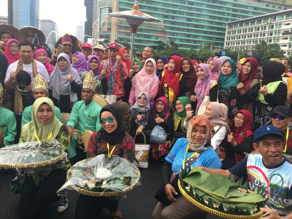 Dengan mengambil areal Car Free Day, petinggi Pemko Banjarmasin yang didampingi Ketua Tim Penggerak PKK Hj Siti Wasilah juga istri Wakil Walikota H Hj Siti Fatimah lengkap Forum Komunikasi Pimpinan Daerah dengan berbaju sasirangan, dan diapit dengan Naga Banjar serta diiringi Sinoman Hadrah keliling ke Bundaran HI Jakarta tepat masyarakat berkumpul dari berbagai kota di Indonesia.