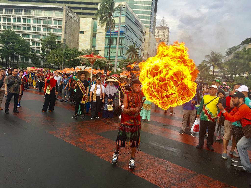 Bahkan Minggu, (17/02/2019) dilakukan kampanye besar-besaran dengan menampilan budaya Susur Sungai, hingga Kai Api dipamerkan di Bundaran Hotel Indonesia (HI).