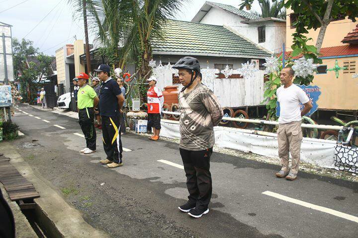 ‘’Setiap akhir pekan kegiatan sabtu gowes berkeliling ke sekolah dan ke kampung-kampung saya lakukan, baru hari ini saya kesampaian ke kampung ini. Dan ternyata seluruh warga di sini punya kepedulian yang sama untuk menciptakan suasana yang bersih dan nyaman termasuk juga sehat untuk berolahraga dan sangat bersemangat senam Ling Tien Kung supaya sehat,” ucapnya.