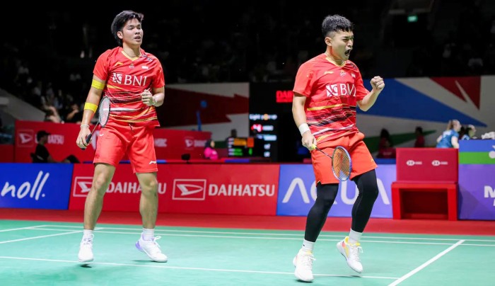 Leo Rolly Carnando/Daniel Marthin sukses mengalahkan pasangan Denmark, Daniel Lundgaard/Mads Vestergaard dengan 21-14, 21-12, Jumat (26/1/2024). [Bola.com/Bagaskara L]Mengutip CNNIndonesia, yang pertama kali memastikan tiket semifinal adalah dua pasang, yakni Leo Rolly Carnando/Daniel Marthin dari ganda putra dan Lanny Tria Mayasari/Ribka Sugiarto dari ganda putri.