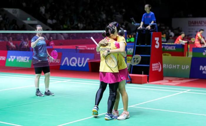 Lanny/Ribka sukses mengalahkan wakil Belanda, Debora Jille/Cheryl Seinen dengan 21-10, 21-16, Jumat (26/1/2024). [Bola.com/Bagaskara L]Lanny/Ribka menang dengan margin yang terbilang jauh 21-10 di gim pertama. Konsistensi permainan tetap ditunjukkan Lanny/Ribka untuk menutup gim kedua dengan skor 21-16.
