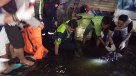 Anggota Satpolairud Polresta Banjarmasin, dibantu para relawan, melakukan Olah Tempat Kejadian Perkara, tak kemudian korban dibawa ke Kamar Jenazah Rumah Sakit Umum Daerah (RSUD) Ulin Banjarmasin.