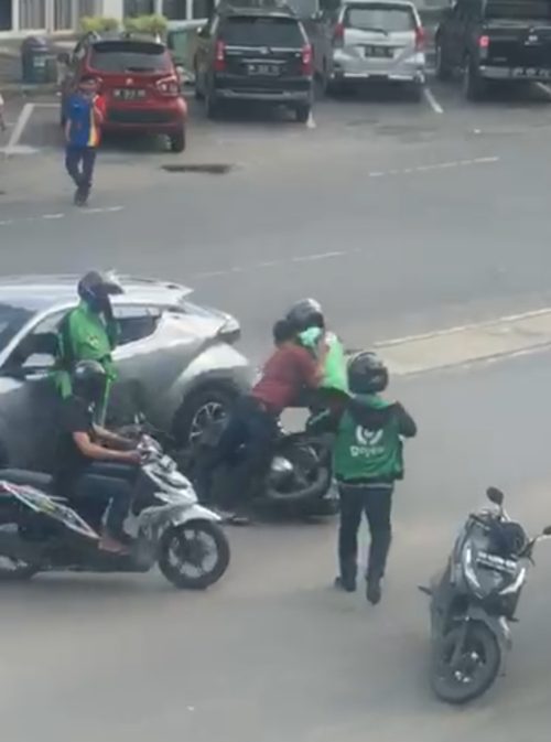Rupanya kawasan Ojol ini sudah ikuti dari kediaman sampai ketujuan si pria tersebut yang identitasnya belum diketahui pasti, karena setelah ribut meninggalkan lokasi.