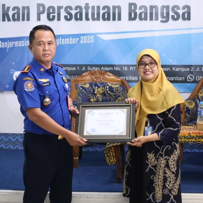 Sementara itu, Rektor Universitas PGRI Kalimantan, Dr. Hj. Dina Huriaty, M.Pd., menyampaikan apresiasinya terhadap kehadiran Hendro sebagai narasumber.